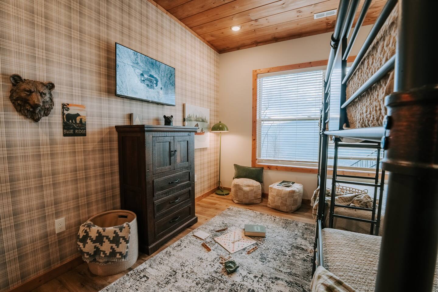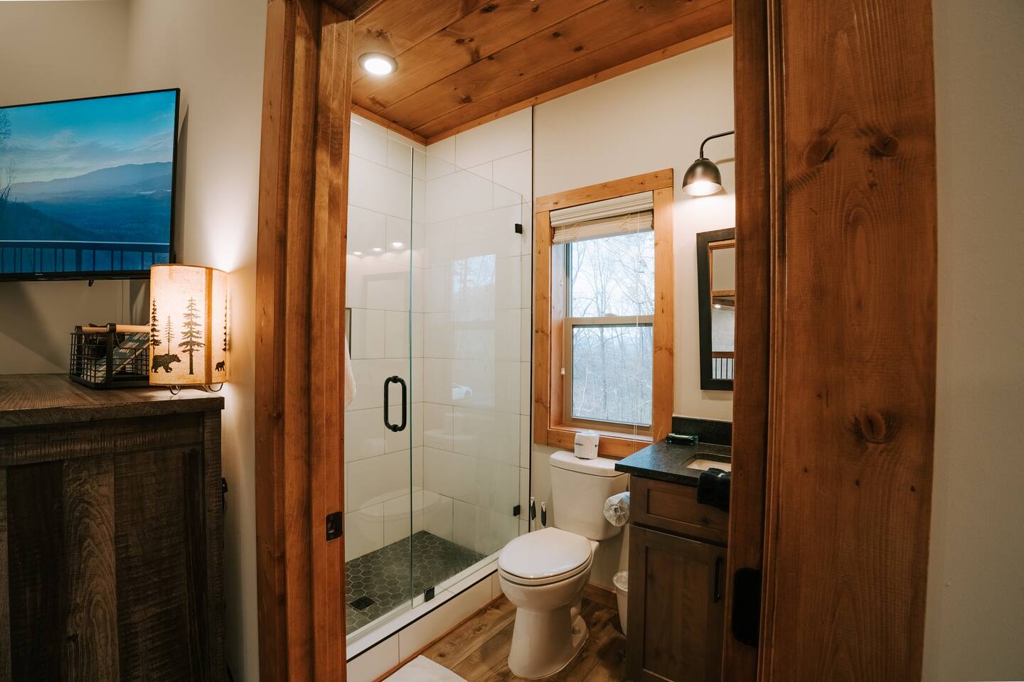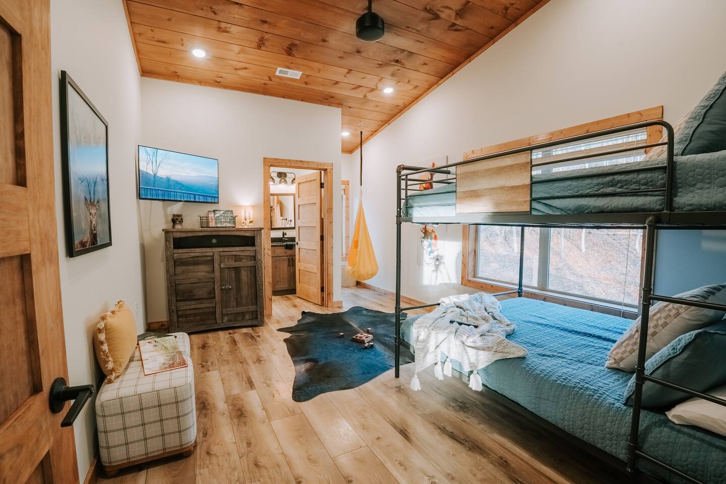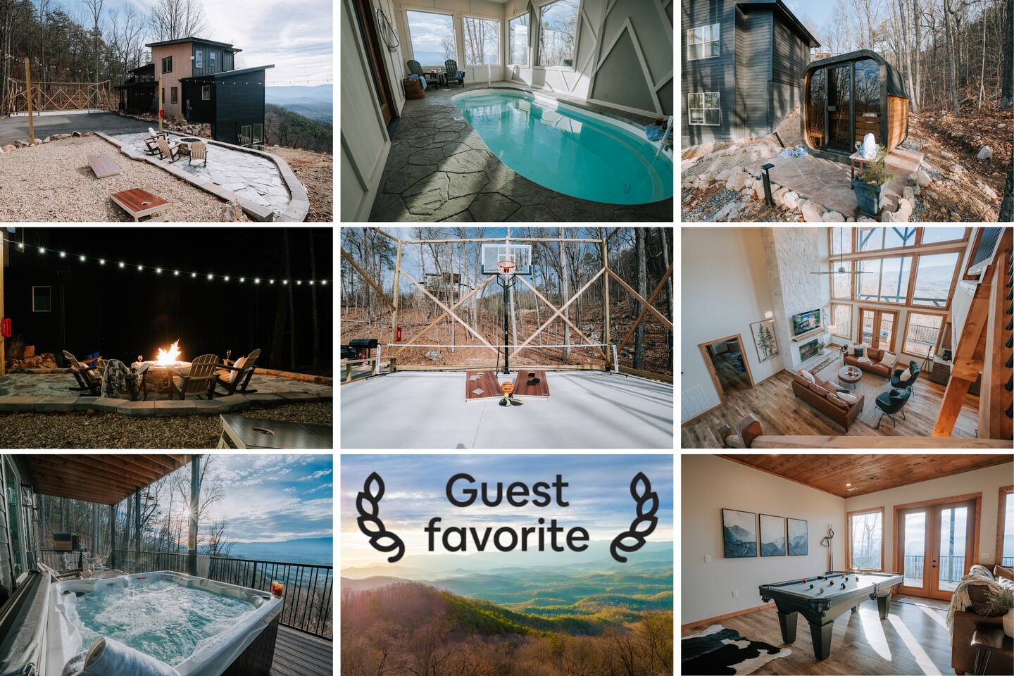 🏡 Welcome to House on a Hill Escape to House on a Hill—a stunning 3-story, 3,700 sq. ft. log cabin where modern luxury meets Smoky Mountain charm. Perfect for large families, groups, or couples’ getaways, this 5-bedroom, 6-bath retreat offers million-dollar mountain views, a private heated indoor pool, home theater, arcade game, pool table, hot tub, and so much more. Managed personally by the owners, House on a Hill offers a level of care and hospitality rarely found in the Smokies. Enjoy easy access and parking for up to 8 vehicles as you step into your peaceful mountain escape. The long, level driveway makes parking and turning around easy—even for guests traveling with trailers, motorcycles, or larger vehicles. ✨ Main Level Gather in the open-concept living area featuring plush leather seating, a stacked-stone electric fireplace, and a large HDTV. Step out onto the expansive deck to take in panoramic mountain views or grill out on the gas grill. The fully equipped kitchen includes stainless steel appliances, quartz countertops, and a spacious island with seating for 5—plus a dining table for 10. This level also features two bedrooms: Bedroom 1: King bed, HDTV, and ensuite bath with double vanity and walk-in tiled shower. Bedroom 2: King bed, HDTV, and access to a shared bath with double vanity and walk-in tiled shower. 🛏 Upper Level Bedroom 3: King bed, HDTV, private bath with tiled shower. Bedroom 4: Queen bunk bed, HDTV, private bath with tiled shower. 🎮 Lower Level The fun continues downstairs! Enjoy an entertainment area with a pool table, arcade game, comfy sectional seating, and a large HDTV. Step outside to the lower deck for a relaxing soak in the hot tub surrounded by nature. This level also features: Bedroom 5: Two queen bunk beds (4 beds total), HDTV, ensuite bath with double vanity and tiled shower. Laundry area for your convenience. Private heated indoor pool—perfect year-round fun for the whole family! 🌄 The Experience Whether you’re sipping coffee on the deck as the sun rises over the mountains, cheering over a family game night, or hanging together in the indoor pool while the Smoky Mountain sky turns to twilight, House on a Hill was created for families to slow down, laugh a little louder, and make memories that will last a lifetime. 🌟 Why Guests Love House on a Hill • Private indoor pool with panoramic views • Long, level driveway—perfect for trailers or multiple vehicles • Peaceful mountain setting just minutes from top attractions • Thoughtfully managed by the owners—no third-party company 🎢 Just Minutes Away from the Smokies’ Top Attractions! Stay at House on a Hill and enjoy being close to everything the Smokies have to offer! Whether you’re chasing theme-park thrills, exploring mountain trails, enjoying family fun, or hunting for the perfect souvenir, you’ll find it all within a short, scenic drive. You’re just minutes from: • Off-Road Pigeon Forge (UTV & ATV Adventures) – 3 miles (~9 min) • Forbidden Caverns – 10 miles (~20 min) • Great Smoky Mountains National Park – 14 miles (~25 min) • Dollywood – 17 miles (~30 min) • The Island in Pigeon Forge – 18 miles (~35 min) • Tanger Outlets Sevierville – 18 miles (~35 min) • Buc-ee’s Kodak – Grab the world’s best snacks, BBQ sandwiches, and travel gear at the biggest convenience store you’ve ever seen! From mountain hikes to waterfall chasing, roller coasters to outlet shopping, you’ll have endless ways to fill your days—then come “home” to unwind in comfort and soak in the mountain views. Looking for a fun day trip? We’re just 75 miles (about 1½ hours) from Asheville, North Carolina, home of the famous Biltmore Estate, Blue Ridge Parkway, and vibrant downtown arts and food scene. Whether you stay close or explore a bit farther, House on a Hill puts you right in the heart of it all! 🧳 Your Smoky Mountain Retreat Awaits House on a Hill combines comfort, luxury, and jaw-dropping views—everything you need for the ultimate Smoky Mountain getaway. Book your stay today and experience the magic for yourself! 🛠️ Please Note House on a Hill is a brand-new build, and we’re continuing to enhance the property to make your stay even more incredible! Upcoming additions include a 6th bedroom with a queen bed, which will allow the cabin to comfortably sleep up to 20 guests on beds. Other exciting enhancements include a pickleball court, basketball court, fire pit, outdoor sauna, custom playset, and more. As these upgrades are completed, we’ll update the listing details and photos so you can see all the new features in store!