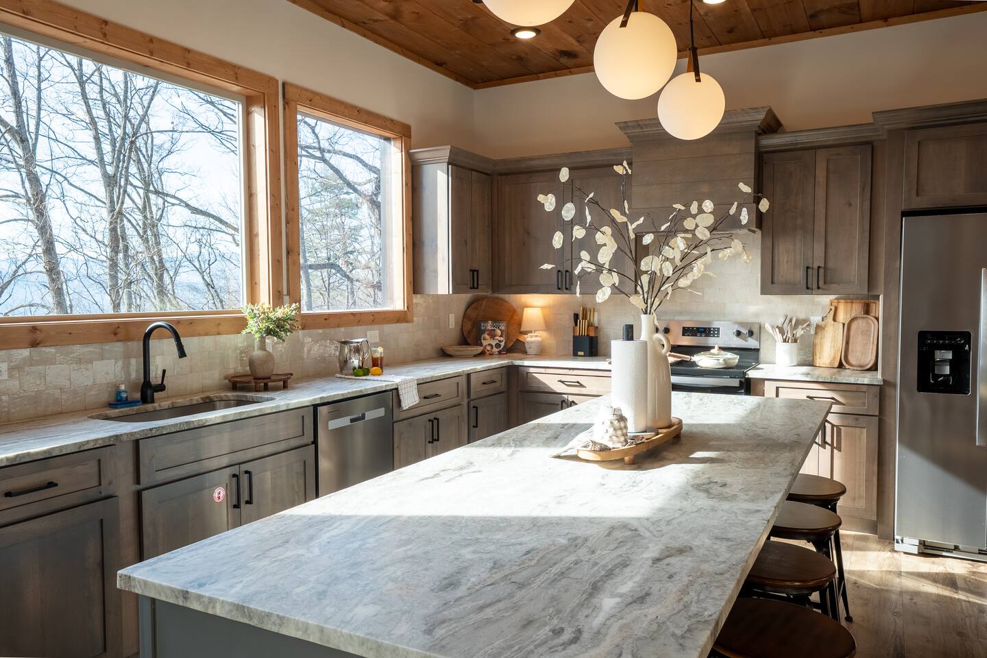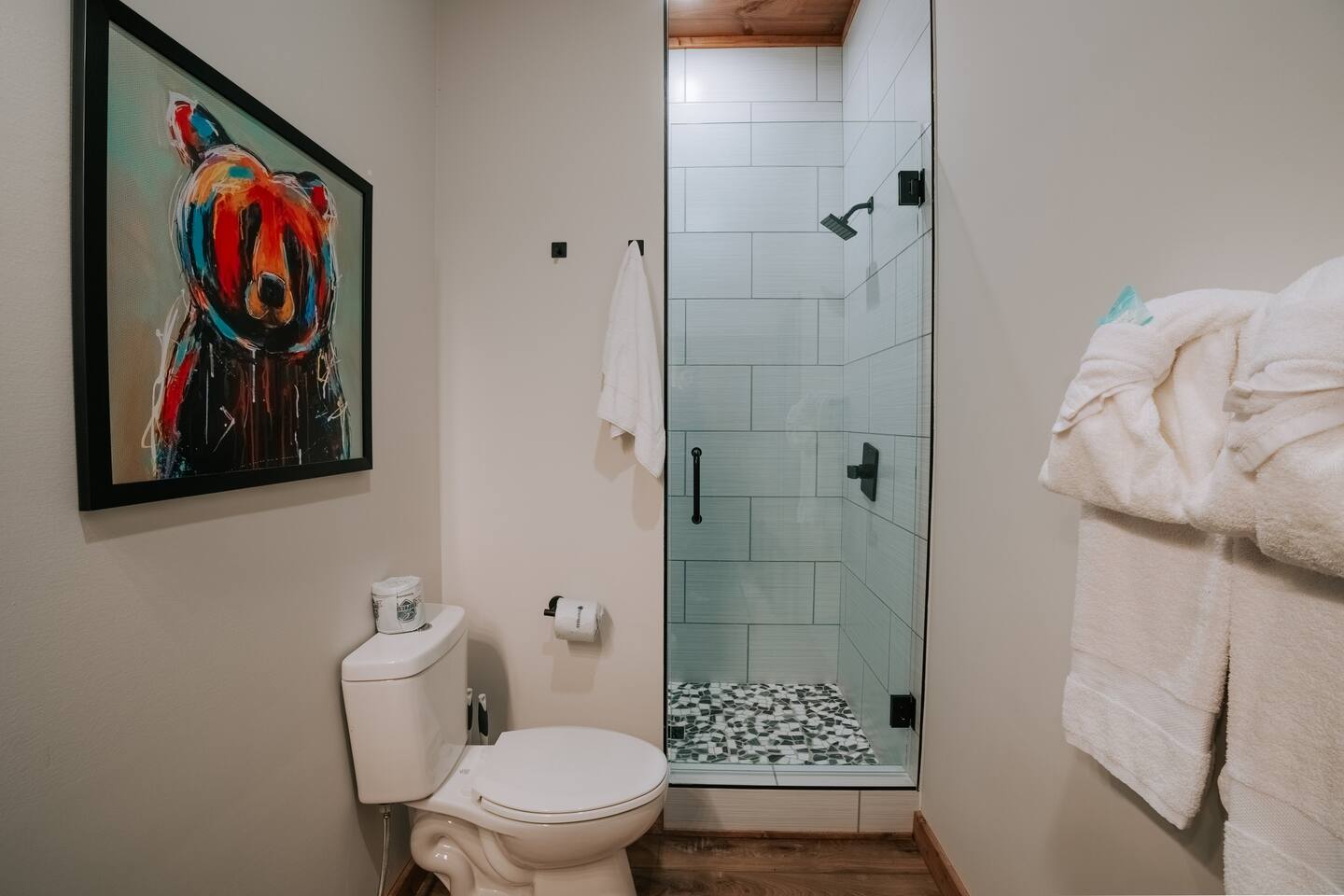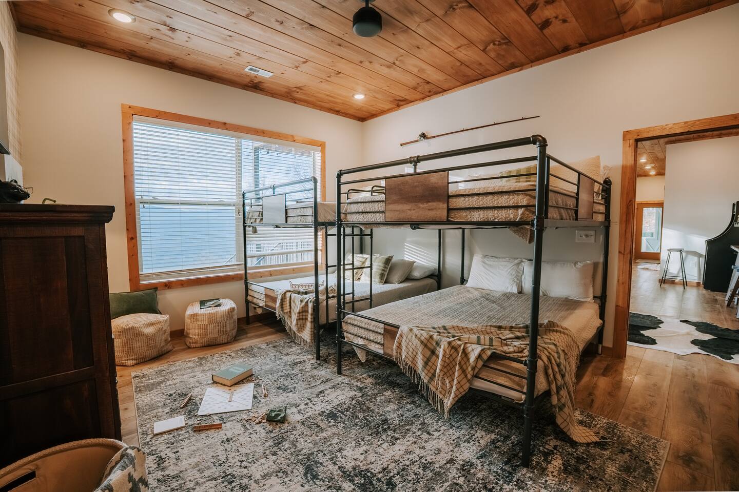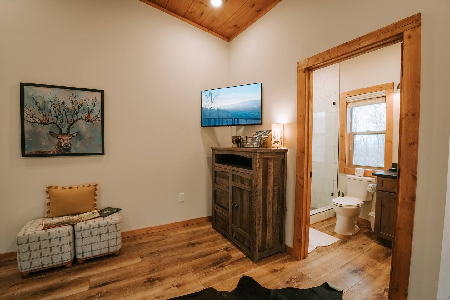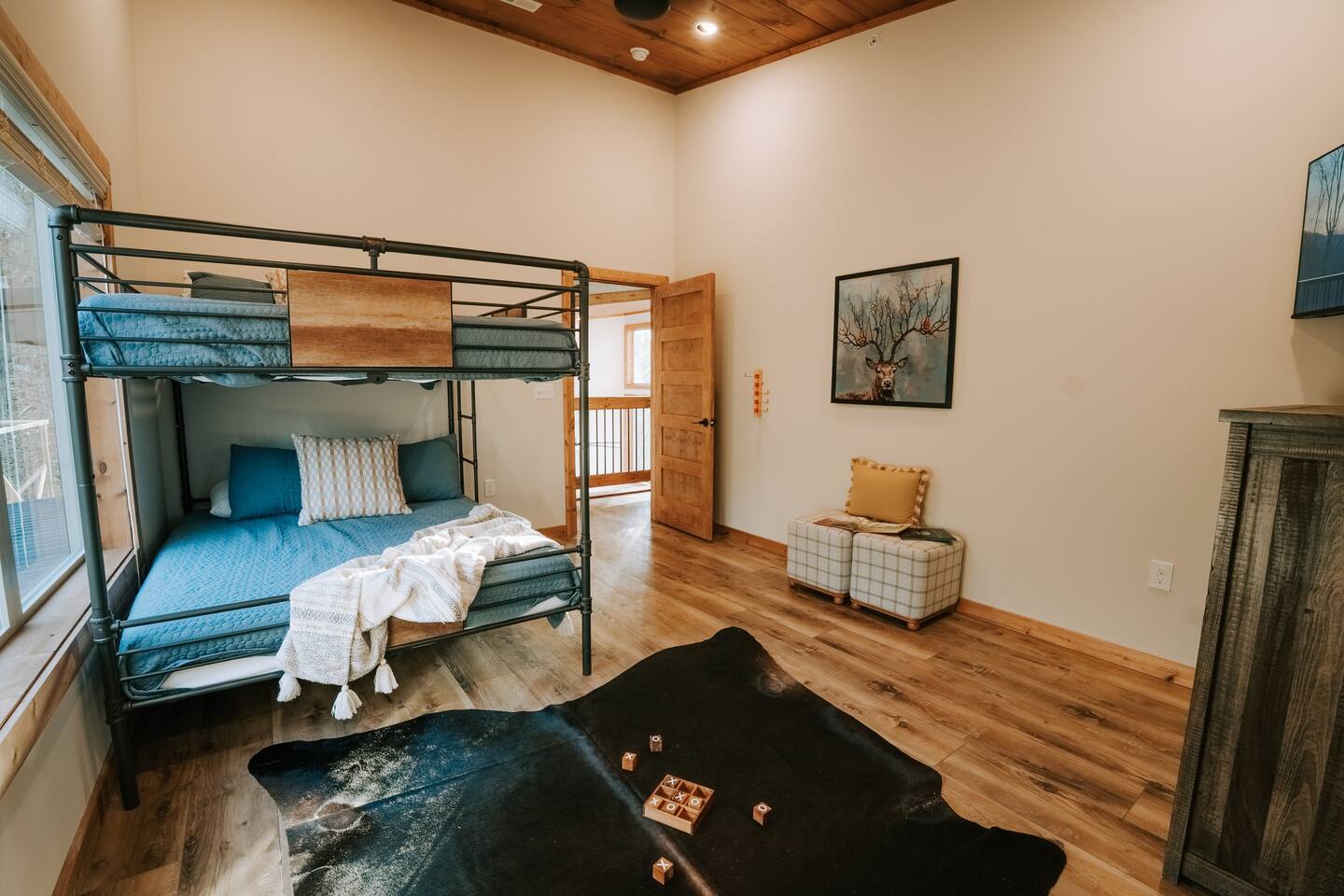 🏡 Welcome to House on a Hill Escape to House on a Hill—a stunning 3-story, 3,700 sq. ft. log cabin where modern luxury meets Smoky Mountain charm. Perfect for large families, groups, or couples’ getaways, this 5-bedroom, 6-bath retreat offers million-dollar mountain views, a private heated indoor pool, home theater, arcade game, pool table, hot tub, and so much more. Managed personally by the owners, House on a Hill offers a level of care and hospitality rarely found in the Smokies. Enjoy easy access and parking for up to 8 vehicles as you step into your peaceful mountain escape. The long, level driveway makes parking and turning around easy—even for guests traveling with trailers, motorcycles, or larger vehicles. ✨ Main Level Gather in the open-concept living area featuring plush leather seating, a stacked-stone electric fireplace, and a large HDTV. Step out onto the expansive deck to take in panoramic mountain views or grill out on the gas grill. The fully equipped kitchen includes stainless steel appliances, quartz countertops, and a spacious island with seating for 5—plus a dining table for 10. This level also features two bedrooms: Bedroom 1: King bed, HDTV, and ensuite bath with double vanity and walk-in tiled shower. Bedroom 2: King bed, HDTV, and access to a shared bath with double vanity and walk-in tiled shower. 🛏 Upper Level Bedroom 3: King bed, HDTV, private bath with tiled shower. Bedroom 4: Queen bunk bed, HDTV, private bath with tiled shower. 🎮 Lower Level The fun continues downstairs! Enjoy an entertainment area with a pool table, arcade game, comfy sectional seating, and a large HDTV. Step outside to the lower deck for a relaxing soak in the hot tub surrounded by nature. This level also features: Bedroom 5: Two queen bunk beds (4 beds total), HDTV, ensuite bath with double vanity and tiled shower. Laundry area for your convenience. Private heated indoor pool—perfect year-round fun for the whole family! 🌄 The Experience Whether you’re sipping coffee on the deck as the sun rises over the mountains, cheering over a family game night, or hanging together in the indoor pool while the Smoky Mountain sky turns to twilight, House on a Hill was created for families to slow down, laugh a little louder, and make memories that will last a lifetime. 🌟 Why Guests Love House on a Hill • Private indoor pool with panoramic views • Long, level driveway—perfect for trailers or multiple vehicles • Peaceful mountain setting just minutes from top attractions • Thoughtfully managed by the owners—no third-party company 🎢 Just Minutes Away from the Smokies’ Top Attractions! Stay at House on a Hill and enjoy being close to everything the Smokies have to offer! Whether you’re chasing theme-park thrills, exploring mountain trails, enjoying family fun, or hunting for the perfect souvenir, you’ll find it all within a short, scenic drive. You’re just minutes from: • Off-Road Pigeon Forge (UTV & ATV Adventures) – 3 miles (~9 min) • Forbidden Caverns – 10 miles (~20 min) • Great Smoky Mountains National Park – 14 miles (~25 min) • Dollywood – 17 miles (~30 min) • The Island in Pigeon Forge – 18 miles (~35 min) • Tanger Outlets Sevierville – 18 miles (~35 min) • Buc-ee’s Kodak – Grab the world’s best snacks, BBQ sandwiches, and travel gear at the biggest convenience store you’ve ever seen! From mountain hikes to waterfall chasing, roller coasters to outlet shopping, you’ll have endless ways to fill your days—then come “home” to unwind in comfort and soak in the mountain views. Looking for a fun day trip? We’re just 75 miles (about 1½ hours) from Asheville, North Carolina, home of the famous Biltmore Estate, Blue Ridge Parkway, and vibrant downtown arts and food scene. Whether you stay close or explore a bit farther, House on a Hill puts you right in the heart of it all! 🧳 Your Smoky Mountain Retreat Awaits House on a Hill combines comfort, luxury, and jaw-dropping views—everything you need for the ultimate Smoky Mountain getaway. Book your stay today and experience the magic for yourself! 🛠️ Please Note House on a Hill is a brand-new build, and we’re continuing to enhance the property to make your stay even more incredible! Upcoming additions include a 6th bedroom with a queen bed, which will allow the cabin to comfortably sleep up to 20 guests on beds. Other exciting enhancements include a pickleball court, basketball court, fire pit, outdoor sauna, custom playset, and more. As these upgrades are completed, we’ll update the listing details and photos so you can see all the new features in store!