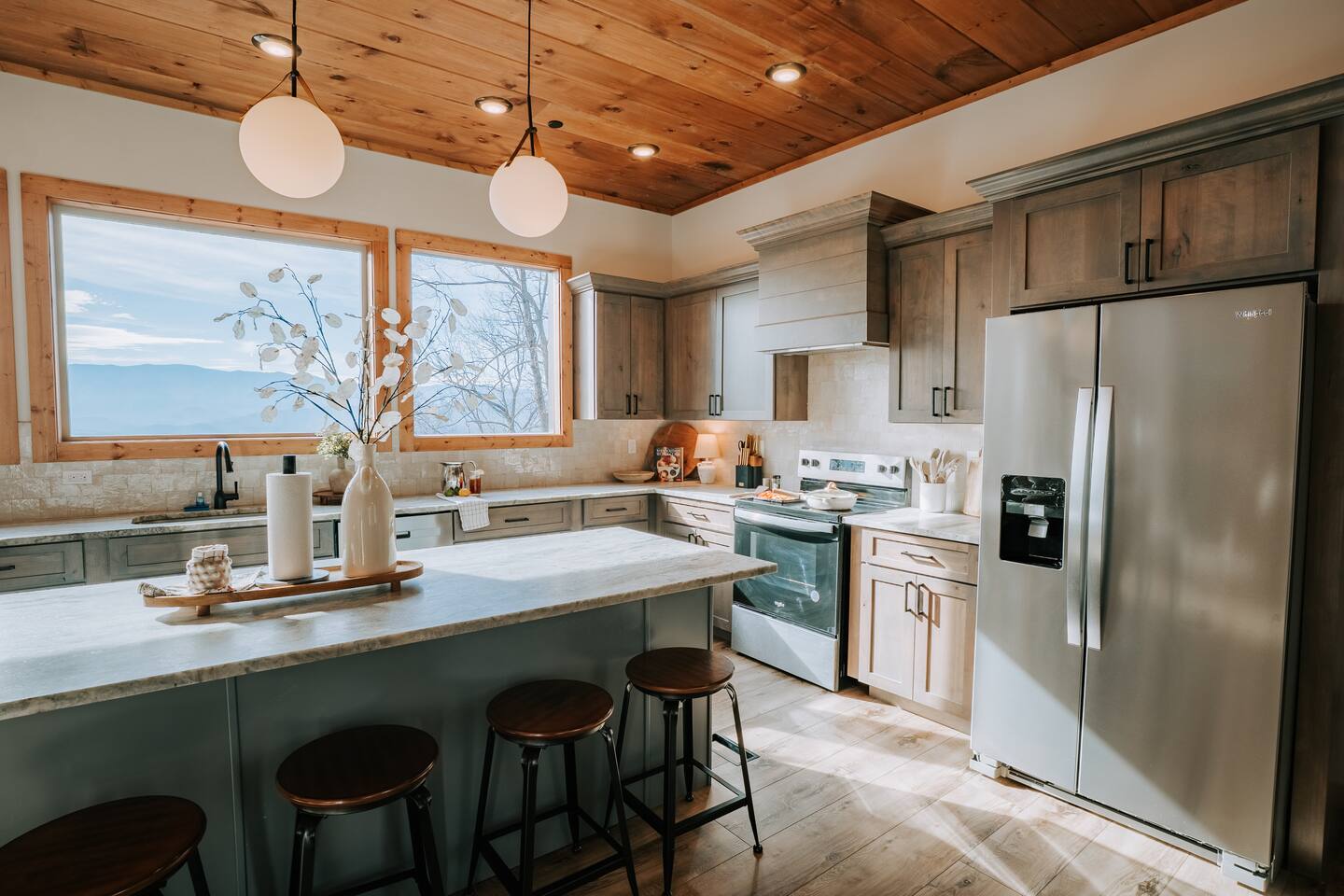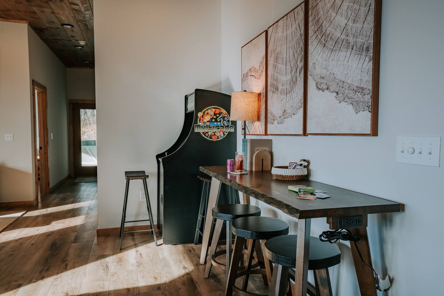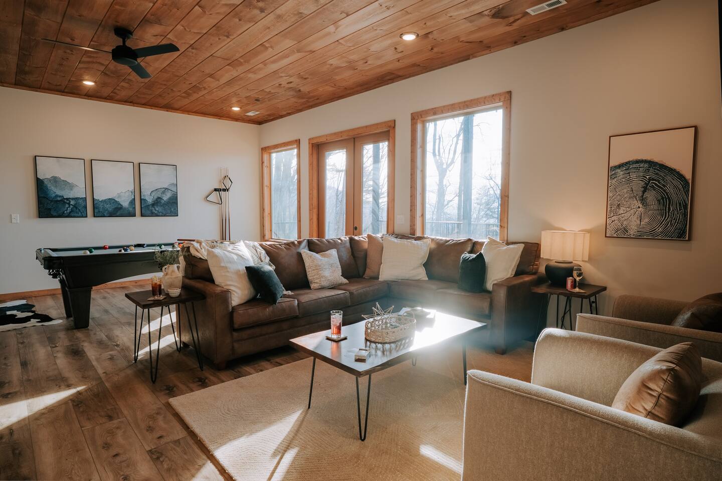 Experience the perfect blend of modern luxury and mountain serenity at House on a Hill—your private Smoky Mountain retreat designed for unforgettable moments with family and friends. This new 3-story cabin features million-dollar mountain views, a private indoor pool, relaxing hot tub, and a fun game room with pool table and arcade. Blending rustic charm with modern comfort, it offers spacious decks, a fully equipped kitchen, and cozy living areas.